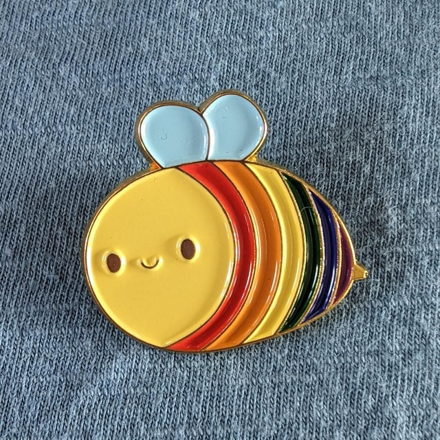 Rainbow pride bee pin badge